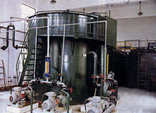 四、真空除氧器用途、 工業(yè)用水中溶有多種氣體,在鍋爐水給水中,氧對鍋爐腐蝕的危害大。為此國家標準GB1576-85《低壓鍋爐水質標準》中規(guī)定2T/h以上鍋爐必須除氧。真空除氧器的出水含氧量能滿足標準的要求,真空除氧器還可用于石油鉆井回注水的除氧及水處理脫硫工藝中氫離子交換器后除二氧化碳等多種場合。