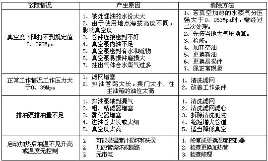 (二) 啟動(dòng)濾油機(jī) (三)、注意事項(xiàng) 1、真空泵的工作溫度不得超過(guò)75度。 2、所有電機(jī)在無(wú)異常噪音的工作情況下電機(jī)溫度也不能大于60度使用。 3、注意觀察精濾器上的壓力表,如果表壓超過(guò)0、4Mpa時(shí),必須停機(jī)清洗更換濾芯、方可投入運(yùn)行。 4、如果發(fā)現(xiàn)進(jìn)油量過(guò)小,須檢查粗濾器,如果濾網(wǎng)堵塞可用煤油清洗后繼續(xù)使用。 。ㄋ模⑼C(jī)注意事項(xiàng) 必須先停加熱系統(tǒng),再停真空泵,打開(kāi)放氣閥,再停排油泵,關(guān)掉進(jìn)出口油閥,切斷總電源及所有開(kāi)關(guān),運(yùn)行周期長(zhǎng)了,可打開(kāi)冷卻器排水閥放水,看是否有水,有水必須排凈,同時(shí)真空缸、粗濾器、精濾器的排污閥門(mén),應(yīng)定期排污,排污后隨時(shí)關(guān)閉閥門(mén)。
