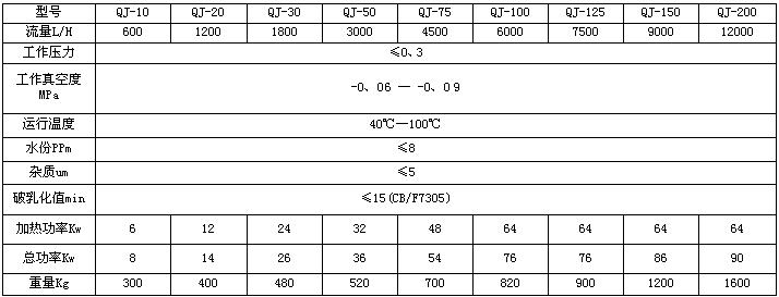 (二)、多功能系列真空濾油機(jī)的技術(shù)性能