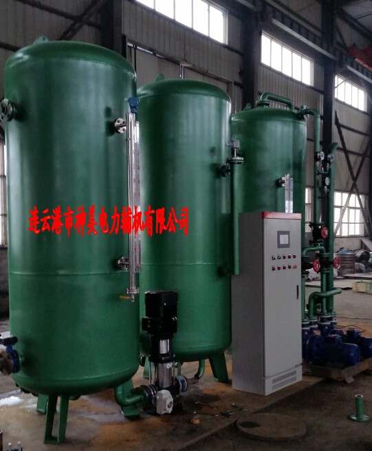 1、將水灌滿水噴射真空泵機組的循環(huán)水箱,并注入冷卻水調換。啟動機組的離心泵,壓力≥2.5kg/cm2。水噴射真空泵開始工作,在短時間內真空度中升到極限(即真空度不在上升)。真空除氧器脫氣塔的真空度基本等于或略低于水噴射真空泵的真空度,真空度是否正?筛鶕斕齑髿鈮号c循環(huán)水溫來判斷。 2、待真空除氧器真空度穩(wěn)定(不再變化)數分鐘全,接通液位自控報警器,此時除氧器進水離心泵與電磁閥(水)自動啟動。軟化水進入除氧器除氧,進水壓≥2 kg/cm2。進水時除氧器真空度要低于極限真空度,此時的真空度才是除氧器支行的真空度,溫差根據這真空度所對應的飽和溫度來調節(jié)。進水與否由液位報警器控制,進水的同時應啟動加熱設備。 3、待水箱內除氧水上升到中水位后,打開真空除氧器脫氣塔與引水泵之間的閘閥抽除引水泵內的空氣,觀察引水泵上真空表,使其與脫氣塔真空度基本相同。如鍋爐是連續(xù)進水工作的,然后就關閉該閥。如鍋爐是斷續(xù)進水工作的,則該閥應略微常開。 4、打開真空除氧器水箱出水閥門,使除氧器水充滿引水泵(約數分鐘)引時引水泵進水口真空表讀數約比除氧器低100mmHg。 5、啟動引水泵的離心泵,使引水泵自身循環(huán)工作,壓力約3kg/cm2。如無壓力說明引水泵內無水或未充滿水,此時應重復上述第3、4點。 6、逐漸打開引水泵出水閥門,工作壓力≥2kg/cm2,同時開啟鍋爐給水泵,使除氧水進入鍋爐。調節(jié)鍋爐給水泵出口閥門,觀察流量計,使出水流量為所需要求,但不得超過引水泵的最大出力值。 (1)對連續(xù)進水的鍋爐,其進水量應調節(jié)鍋爐給水泵出口閥門。由于連續(xù)進水,進水量波動不大,較符合引水泵工作狀況,使用時盡量采用此方法。 (2)對繼續(xù)進水的鍋爐,引水泵與鍋爐給水泵可同時啟動或停止,如鍋爐停止進水的時間較短,引水泵可連續(xù)運轉,不便停止。由于是斷續(xù)進水,在進水時流量較大,往往比引水泵最大出力值還大,是引水泵不能正常工作。因此要調節(jié)鍋爐給水泵進出口閥門及進出口間的回龍閥門,即保證鍋爐的出水壓力,流量又符合引水泵出力。 7、取樣分析除氧水殘氧量,初投產時,應每隔兩小時分析一次,根據分析結果,調節(jié)軟化水加熱設備的熱源流量,使之符合溫差要求。例如:工作時脫氣塔真空度為725mmHg,其相對應的水的飽和溫度為31℃,軟化水溫度應為34-36℃,循環(huán)水溫度應26-28℃。