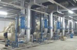 1、自動真空除氧器除氧塔 除氧塔內(nèi)裝有特制霧化器,每只霧化器處理水量恒定,從而得到化霧效果。塔內(nèi)裝有蓄熱器、氣水導流器,親水性能好。霧化的結(jié)果大大增加了水的脫氣面積,當霧化的水滴繼續(xù)流經(jīng)無規(guī)則蓄熱器時,進一步加強了脫氣效果。雖然水在除氧塔內(nèi)停留的時間很短,但是除氧效果很好。 2、自動真空除氧器除氧水箱 真空除氧器運行時,水箱內(nèi)處于負壓。因此在高位安裝時,水箱出口處與鍋爐給水泵進口之間的凈距離不得小于11米。在低位安裝時(水箱出水口與鍋爐給水泵在同一高度),水箱出水口要接上引水泵機組,使負壓水升壓后進入鍋爐給水泵,水箱上裝有人孔,便于維修保養(yǎng)時使用。 3、新型真空系統(tǒng) 真空除氧器真空系統(tǒng)由水噴射式真空泵、循環(huán)水冷卻箱、離心泵組成。離心泵將循環(huán)水通過噴嘴造成高速水流而產(chǎn)生真空。本水噴射真空除氧裝置可利用軟化兼作循環(huán)水,溫度不會升高,因而可得到較高的真空度,提高除氧效果。方法是利用原有的軟化水水箱兼作循環(huán)水箱,節(jié)約設備及占地面積。 4、真空除氧器引水泵機組 在除氧器低位安裝時使用,通過該泵將負壓的除氧水升壓后再由給水泵打入鍋爐。 5、真空除氧器電磁閥 為避免軟化水進水泵不工作時軟化水進入除氧器,因此在除氧器進水管道中要裝電磁閥,電磁閥的啟閉由水位自控報警器控制,電磁閥選用Dg50,Pg16工作介質(zhì)水溫小于等于60℃ 的規(guī)格。電磁閥要水平安裝。 6、真空除氧器水位自控報警器及管式液位計或其它液位控制器 真空除氧器水位自控報警器由傳感器與控制報警器組成。傳感器與液位計裝在除氧水箱上?刂茍缶鞣旁谑覂(nèi)操作臺上。控制報警器控制軟化水進水泵與電磁閥兩者的動作。 (除氧器的進水量就是除氧器的最大出力,除氧器的出水量與鍋爐運行時的進水量有關,一般不超過除氧器的額定出力,因此除氧器的進水量略大于出水量。當除氧水箱內(nèi)水位在正常水位的上限時,水位自控報警器動作,使得軟化水進水泵停止運轉(zhuǎn)與電磁閥關閉。此時由于除氧器仍在出水,水位逐漸下降,當水位在正常水位的下限時,軟化水進水泵有開始運轉(zhuǎn)同時電磁閥也打開,水位逐漸上升,從而水箱內(nèi)水位可保持在正常水位范圍內(nèi)。超出正常水位的上限或下限時還可以報警,此時可手控進行強制進水或使軟化水進水泵停止運轉(zhuǎn),除氧器的進水是間斷進行的,除氧器的出水可以是連續(xù)也可以是間斷的(與鍋爐操作有關)要求盡可能連續(xù)進水。