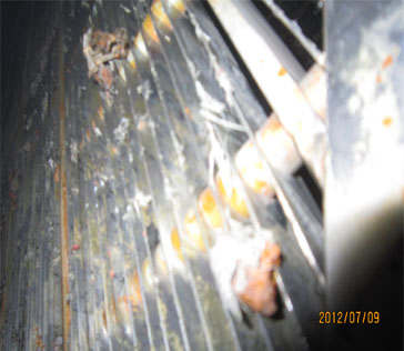 2、欄板網設計通流面積不夠,水阻大,欄板網片易變形損壞;導至收球效果不好。如圖所示: