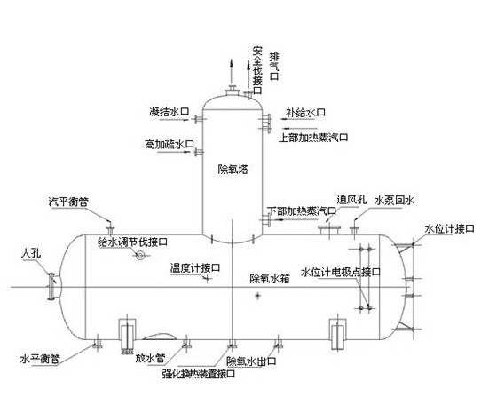 真空除氧器,是一種使水在真空下低溫沸騰,脫除水中含有的氧氣、氮氣、二氧化碳等氣體的設備,由除氧水箱(除氧塔)和真空機組兩大部分組成, 除氧水箱可以高位或低位布置,真空泵機組可采用以蒸汽作動力的蒸汽噴射泵,或以循環(huán)水為工作介質的水噴射泵。