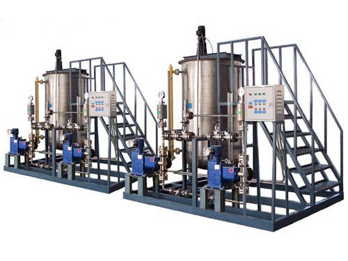加藥裝置是一種具備投藥、攪拌、輸送液體、自動(dòng)控制與一體化的成套設(shè)備,加藥裝置將計(jì)量泵、計(jì)量箱、自動(dòng)控制系統(tǒng)一體化,安裝在一個(gè)固定式底座上。加藥裝置出廠前完成設(shè)備組裝、調(diào)試、試運(yùn)行,用戶只需將組合式自動(dòng)加藥裝置放在加藥間后,將管路連接就可以啟動(dòng),投入運(yùn)行?梢源蟠鬁p少現(xiàn)場(chǎng)工人工作量、有效地保證工期和工程質(zhì)量,減少用戶的麻煩和損失。加藥裝置廣泛應(yīng)用于石油化工各種加藥系統(tǒng)和廢水處理系統(tǒng)。電廠的源水、鍋爐給水、油田地面集輸脫水的自理系統(tǒng)。 一、加藥裝置工作結(jié)構(gòu)原理: 1、加藥裝置--加氨裝置--加聯(lián)氨裝置--磷酸鹽加藥裝置--水處理加藥裝置--PLC加藥裝置--智能加氨裝置﹥﹥主要由溶液箱[攪拌箱(帶攪拌器)]、計(jì)量泵、液位計(jì)、電控柜、管路、球閥、安全閥、止回閥、壓力表、Y型過濾器、底座、扶梯等組成(可根據(jù)用戶實(shí)際要求配置)。 1、加藥裝置--加氨裝置--加聯(lián)氨裝置--磷酸鹽加藥裝置--水處理加藥裝置--PLC加藥裝置--智能加氨裝置根據(jù)所需藥劑濃度,在攪拌箱內(nèi)配制,經(jīng)攪拌器攪拌均勻后投入溶液箱、用計(jì)量泵(加藥泵)向投藥點(diǎn)或指定的供水系統(tǒng)中輸送所配制的溶液。成套加藥裝置具有結(jié)構(gòu)緊湊、安全簡(jiǎn)單、操作簡(jiǎn)便等特點(diǎn)。該裝置還可根據(jù)用戶不同工藝流程的要求,進(jìn)行有針對(duì)性的設(shè)計(jì)、配置必要的部件,實(shí)現(xiàn)功能(如自動(dòng)遠(yuǎn)程控制)經(jīng)濟(jì)實(shí)用。 二、加藥裝置選型注意事項(xiàng) 1、用戶選用加藥裝置時(shí),首先根據(jù)系統(tǒng)需要投加溶液量來確定選用規(guī)格(包括計(jì)量泵參數(shù)、攪拌箱容積、溶液箱容積及現(xiàn)場(chǎng)條件),再根據(jù)投加藥情況、確定投加藥情況,確定投加藥方式(一般采用“一開一備”的方式); 2、根據(jù)需要選取加藥裝置各部件的材質(zhì)(不銹鋼、碳鋼、非金屬材料)、計(jì)量泵型號(hào)(隔膜計(jì)量泵、柱塞計(jì)量泵)或向我公司提供所加藥劑的參數(shù)(名稱、濃度、溫度、密度、粘度、腐蝕性等); 3、對(duì)加藥裝置的特殊要求。公司特殊設(shè)計(jì)。