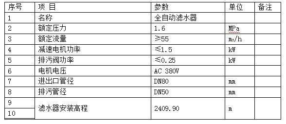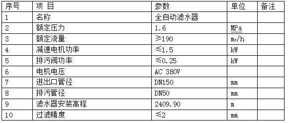 全自動濾水器技術(shù)要求文字表格說明?