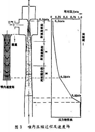 ■改進(jìn)后新型抽氣器的運(yùn)行結(jié)果表明,經(jīng)濟(jì)效益顯著: (i)新、舊抽氣器抽吸空氣量(出力)均為20kg/h,新型抽氣器的耗水量比舊型的降低29.7%。 (ii)計(jì)算耗功:新型比舊型降低31.8%,實(shí)測(cè)電耗由96.skwh/h降到70kwh/h,新型抽氣器的電耗降低27.5%。振動(dòng)、噪音減少,由99dB降到88dB。 ■新射水抽氣器,射水抽汽器的節(jié)能原理新射水抽氣器,射水抽汽器的改進(jìn)主要是降低內(nèi)部損失,增大做功能力。首先由射水抽氣器,射水抽汽器的內(nèi)22備效率來分析。由式(1)可知,射水抽氣器,射水抽汽器的內(nèi)部損失發(fā)生于從進(jìn)口至排管的全部流程中。欲提高抽氣器的效率,正確分析全部流程的變化是很重要的。工作水從噴嘴噴出時(shí),流速增加,從而使噴嘴前后產(chǎn)生靜壓差,迫使流休加速,因流通截面突然擴(kuò)大,流束受到向外的擴(kuò)張作用,從一定的角度射向吸入寶,運(yùn)動(dòng)中水束的質(zhì)點(diǎn)將所攜帶的動(dòng)能傳遞給包圍于水束的外圍的空氣,使其隨之下行。顯然,只有當(dāng)水束及其所攜帶的空氣能全部順利地進(jìn)入喉管,才能獲得高效率。從公式看出,增加工作水噴嘴的壓力降公PP,可提高引射系數(shù),增加效率。但是,在實(shí)際中,單純靠增加水泵的出水量是不能達(dá)到提高效率這一目的的。因?yàn)樵诖送瑫r(shí)也增加了能耗;另一方面,對(duì)每一種抽氣器來說,水量的增大都有一個(gè)極限值,超過這一極限,吸氣居相反會(huì)減少。這是由于: (l)過量容積的水進(jìn)入一定截面的喉管,進(jìn)喉竹的空氣量必然減少了; (2)水噴嘴口徑一定時(shí),提高水壓,噴射角增大,水、氣射流的外緣極易撞擊于喉管之外。因而,大的工作壓力能形成高的真空和大流量比,但是這并不意味著大的工作水壓就具有高的效率,而正相反,在抽真空時(shí),往往是較低的工作壓力能獲得較高的效率。當(dāng)然工作壓力并非越小越好,如果太小,甚至小于某一極限,會(huì)產(chǎn)生返水導(dǎo)致工作中斷。因而應(yīng)尋求一最優(yōu)工作壓力。 ■截面比改進(jìn)的節(jié)能原理犯吸入室中,空氣的質(zhì)量遠(yuǎn)比水的質(zhì)且小,若要增強(qiáng)水束對(duì)空氣的引射能力,進(jìn)入吸入室的工作水的流速至關(guān)重要,因?yàn)橘|(zhì)點(diǎn)的動(dòng)能與其速度平方成正比。適當(dāng)?shù)乜s小噴嘴口徑,可提高進(jìn)水壓力以增大水的流速,水質(zhì)點(diǎn)動(dòng)能增加,同時(shí)又降低了抽氣器的耗水量。在喉竹而積f3不變時(shí),適當(dāng)縮小噴嘴面積f,,一也就是增大了面積比。舊型抽氣器噴嘴流速一般不超過22m/s,改進(jìn)后可達(dá)25一28m/s,舊型抽氣器改造,如欲維持原有的抽吸量:截面比f:/f:即增大了。 ■經(jīng)改進(jìn),長喉型抽氣器耗水量將比短喉型減少40%,這樣就可相應(yīng)選用較小容量的水泵,使得水泵耗電量大為降低。截面比是一項(xiàng)極重要的結(jié)構(gòu)參數(shù),一般確定比值應(yīng)比最大容積引射系數(shù)稍大一些,適當(dāng)增大截面比的另一好處是,當(dāng)水、氣射流呈擴(kuò)散形射向喉管時(shí),可減少對(duì)喉口‘的沖擊,此能量損失不可忽略。 ■新型的抽氣器的截面比一般為5一5.5左右,也不宜過份增大,否則會(huì)降低喉管內(nèi)的流速,影響壓縮作用。加長的節(jié)能原理 射水抽氣器,射水抽汽器的余速損失早已引起人們的重視,舊式射水抽氣器,射水抽汽器所消耗的能量一半以上以余速形式損失于喉管外的排出管中,由子射水抽氣器,射水抽汽器的發(fā)展初期,對(duì)器內(nèi)工作機(jī)理的研究大多局限于吸入室內(nèi),從而忽略了兩相流在喉管中的壓縮作用。 ■直到七十年代初才認(rèn)識(shí)到兩相流在喉管中的不斷壓縮有助于增強(qiáng)抽吸作用。這就是射水抽氣器,射水抽汽器工作的第二機(jī)理。由式(1)可見,射水抽氣器,射水抽汽器的內(nèi)效率隨乙Pc值而遞增。實(shí)驗(yàn)表明:喉管內(nèi)的工作過程如下,從噴嘴射出的工作水,墓本上保持截面形狀不變,同時(shí),由于射流對(duì)周圍氣體的粘滯作用,射流把空氣卷入喉管,兩相流進(jìn)入射流密集段,具有較小動(dòng)能的氣相分布于水束的外圍。這段喉管內(nèi)的運(yùn)動(dòng)可劃分為兩個(gè)性質(zhì)不同的區(qū)域:一是近管壁大部分為空氣的邊界區(qū)域,另一個(gè)是管道中心大部分為水束的區(qū)域。在氣、液分離的情況下,氣休不能獲得與水束同樣的動(dòng)能。在邊界層中,由于管壁對(duì)流體粘滯力的作用而存在著流速梯度,對(duì)于氣體來說,流速梯度最為明顯,空氣流速將很小,甚至?xí)霈F(xiàn)部分氣相返流,這無疑會(huì)降低空氣抽吸量。喉管加長后,隨著流體的下行,水束破碎,氣體向中心擴(kuò)散,兩相流逐漸混合呈霧狀,呈可壓縮性,壓力逐漸升高,形成氣液混合液運(yùn)動(dòng)段。圖3顯示了喉內(nèi)壓縮過程及速度場的分布。 ■可見,隨著喉管的加長,沿喉管下行,外圍至中心的流速絕對(duì)壓力時(shí)沈誼喂內(nèi)遨度場一壓力特性線梯度將愈來愈小,標(biāo)志著兩相流巳得到充分混合。動(dòng)能,邊界層的空氣也足以克服管壁的粘滯作用,圖3喉內(nèi)壓縮過程及速度場這樣,就表明空氣獲得了與水束相近的獲得高速度,這就增大了抽吸效率。