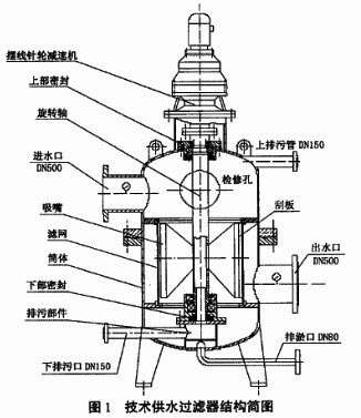 下面新型全自動(dòng)濾水器由連云港市神美電力輔機(jī)有限公司生產(chǎn),通過龍灘水電站機(jī)組且技術(shù)供水系統(tǒng)過濾器存在其濾筒內(nèi)部刮板經(jīng)常失效,雜物大部分容易纏繞在旋轉(zhuǎn)臂上,而且纏的很緊,清污時(shí)根本反沖不掉,經(jīng)過多次的技術(shù)比較和認(rèn)證,連云港市神美電力公司新型全自動(dòng)濾水器最顯著特點(diǎn)就是完全靠水力驅(qū)動(dòng),控制裝置簡單可靠,經(jīng)過長期時(shí)間的實(shí)際運(yùn)行,有效地解決了現(xiàn)場存在的問題,提高了設(shè)備的自動(dòng)化水平。 龍灘水電站的機(jī)組技術(shù)供水過濾器采用國產(chǎn)設(shè)備,設(shè)計(jì)壓力2.5 MPa,過濾精度4 mm,設(shè)計(jì)流量2500 m3/h,該結(jié)構(gòu)采用不銹鋼板鉆孔濾網(wǎng),配合大吸嘴和刮板,以清除吸附在濾網(wǎng)內(nèi)壁的雜物,其結(jié)構(gòu)見圖1所示。圖1技術(shù)供水過濾器結(jié)構(gòu)簡圖過濾器工作時(shí),壓力水(臟水)從過濾器上部流入濾筒內(nèi)部,經(jīng)Φ4網(wǎng)孔后,由于壓差的作用,雜物一部分留在濾桶內(nèi),另一部分掛在濾筒的內(nèi)壁上。這樣濾網(wǎng)的外部,就變成了相對清潔的壓力水,以保證過濾器后面管路中水質(zhì)的清潔。清潔的壓力水從過濾器的下部水平管路流出。 該過濾器有3種清污方式: (1)手動(dòng)清污:隨時(shí)在現(xiàn)地,通過啟動(dòng)按鈕將過濾器上部的電機(jī)手動(dòng)開啟,則過濾器中旋轉(zhuǎn)軸帶動(dòng)刮板旋轉(zhuǎn),將懸掛在濾筒內(nèi)壁的雜物刮掉,通過手動(dòng)打開下部排污閥門及上部清漂管路的電動(dòng)閥,將底部雜物和上部漂浮物排到集水井中,達(dá)到手動(dòng)清污的作用。 (2)定時(shí)清污:按照事先確定的過濾器工作時(shí)間,一旦達(dá)到過濾器的運(yùn)行小時(shí)數(shù),則自動(dòng)打開過濾器上部清漂管路電動(dòng)閥及啟動(dòng)電機(jī),將漂浮物排到集水井。 (3)差壓清污:當(dāng)過濾器內(nèi)部出現(xiàn)堵塞現(xiàn)象時(shí),過濾器的進(jìn)口和出口的壓力差增大,達(dá)到過濾器外部的差壓開關(guān)的設(shè)定點(diǎn)時(shí),開關(guān)接點(diǎn)閉合,則自動(dòng)啟動(dòng)電機(jī)和打開下部排污閥門及上部清漂管路的電動(dòng)閥,將雜物排至集水井。 過濾器使用中存在的問題及原因機(jī)組技術(shù)供水過濾器于上游水質(zhì)較差,經(jīng)常出現(xiàn)以下問題,給水輪發(fā)電機(jī)組的安全運(yùn)行帶來很大的隱患。 (1)過濾器堵塞。電站初期運(yùn)行時(shí),由于水頭較低,管路中的水質(zhì)很臟,雜物很多,存在大量的泥沙、石塊、漁網(wǎng)、樹枝、樹葉、死魚、塑料布等雜物。該雜物由于量大成分復(fù)雜,且粒度超過濾筒網(wǎng)眼的直徑而不能通過,留在濾筒內(nèi)部。如果不經(jīng)常對過濾器進(jìn)行清污,勢必導(dǎo)致雜物將過濾器濾筒網(wǎng)孔大部分堵死,最終失去過濾作用。 (2)刮板失效導(dǎo)致清污不徹底,清污能力差。過濾器濾筒的內(nèi)部有兩個(gè)旋轉(zhuǎn)臂,在一側(cè)的旋轉(zhuǎn)臂上,有一個(gè)非金屬材料制成的刮板,該刮板緊貼在過濾器濾筒的內(nèi)壁上,通過壓板和螺栓固定在旋轉(zhuǎn)臂上,清污時(shí)隨著電機(jī)的旋轉(zhuǎn)而繞旋轉(zhuǎn)軸旋轉(zhuǎn)。通過對過濾器分解檢查發(fā)現(xiàn),該刮板材質(zhì)太柔軟,沒有硬度,根本不能刮除吸附在濾筒上的雜物,同時(shí)隨著旋轉(zhuǎn)臂的旋轉(zhuǎn),雜物大多都夾雜在刮板和濾筒之間,更使得刮板的作用大大削弱,再者就是旋轉(zhuǎn)臂的面積太大,水中的雜物大部分容易纏繞在旋轉(zhuǎn)臂上,而且纏的很緊,清污時(shí)根本反沖不掉。隨著濾網(wǎng)堵塞的加劇,在不均勻壓力的作用下,濾筒發(fā)生嚴(yán)重變形,變成一個(gè)不規(guī)則的圓柱體,而刮板的旋轉(zhuǎn)半徑是固定的,因此不能滿足濾筒半徑變化的需要,經(jīng)常造成刮板折斷、丟失。 (3)吸嘴距離濾網(wǎng)內(nèi)壁較遠(yuǎn),清污效果不明顯。過濾器反沖洗時(shí),由于吸嘴距離濾網(wǎng)內(nèi)壁較遠(yuǎn),加之吸嘴過大,對濾網(wǎng)上的雜物吸附作用大大降低,起不到應(yīng)有的作用,因此才導(dǎo)致清污效果不明顯的問題。 (4)減速器與旋轉(zhuǎn)軸的連接銷經(jīng)常折斷。為了保證過濾器上部電機(jī)的運(yùn)行安全,減速器與旋轉(zhuǎn)軸之間的連接銷采用了尼龍材料,以保證旋轉(zhuǎn)軸工作力矩過大時(shí),連接銷首先剪斷,保護(hù)電機(jī)。由于過濾器堵塞嚴(yán)重,濾網(wǎng)變形,增加了旋轉(zhuǎn)軸的工作力矩,導(dǎo)致連接銷經(jīng)常剪斷,過濾器無法工作。 (5)排漂根本不起作用。設(shè)置在過濾器上部的排漂管路和閥門,原本是用來排除懸浮在過濾器濾筒內(nèi)部的漂浮物的,通過實(shí)際觀察,根本不起作用。原因是過濾器工作時(shí),進(jìn)入濾筒上部的漂浮物由于濾網(wǎng)網(wǎng)孔前后壓差的作用,都吸附在濾網(wǎng)的內(nèi)壁上,貼得很緊,有的還夾在濾網(wǎng)的網(wǎng)孔里,當(dāng)過濾器工作在清污狀態(tài)時(shí),即使是打開了清漂管路的閥門,也不能將吸附在濾筒內(nèi)壁上的雜物帶走。 (6)底部排污管路口徑太小,排污能力差,易堵塞。底部排污管的管徑原設(shè)計(jì)只有DN80,太小。底部沉積物堵塞嚴(yán)重時(shí),根本排不出去。 (7)檢修