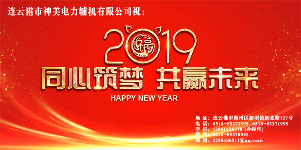 喜悅伴著汗水,成功伴著艱辛,遺憾激勵(lì)奮斗,我們不知不覺地走進(jìn)了2019年,這是神美公司成立后的第25個(gè)年頭了,連云港市神美電力輔機(jī)有限公司總經(jīng)理攜全體員工,謝謝一年來所有對(duì)我公司的大力支持和幫助的用戶!愿我們?cè)谛碌囊荒昀飯F(tuán)結(jié)開拓,把我們的工作做得更好!籍新春佳節(jié)之即,祝大家新年愉快,身體健康,萬事如意。加薪買房購小車,娶妻生子成家室!接財(cái)神。
