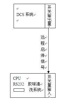 根據(jù)雙葉推拉護(hù)翼式膠球清洗裝置系統(tǒng)的工藝要求,控制系統(tǒng)有手動(dòng)、自動(dòng)和定時(shí)三種操作方式。 (1)在手動(dòng)操作方式下可執(zhí)行每臺(tái)設(shè)備的獨(dú)立運(yùn)行。主要在系統(tǒng)調(diào)試、設(shè)備檢修、處理事故時(shí)使用。 (2)在自動(dòng)操作方式下,按照清洗工藝流程由PLC控制各臺(tái)設(shè)備自動(dòng)運(yùn)行,設(shè)有就地控制和遠(yuǎn)程控制系統(tǒng)。遠(yuǎn)程控制可通過(guò)通訊(下傳起停指令)或電氣接線來(lái)實(shí)現(xiàn)。其工作流程如下: 就地或遠(yuǎn)方DCS操作啟動(dòng)—關(guān)閉收球網(wǎng)并到位—啟動(dòng)膠球泵運(yùn)行—開膠球泵出口閥—延時(shí)開送球閥—開送球室轉(zhuǎn)輪開始清洗—延時(shí)至設(shè)定清洗時(shí)間—關(guān)收球室轉(zhuǎn)輪收球—延時(shí)至設(shè)定收球時(shí)間—關(guān)水泵出口閥(如果有)—關(guān)閉送球閥—停膠球泵。 (3)在定時(shí)操作方式下,可以根據(jù)清洗工藝要求,每隔一定時(shí)間(可任意設(shè)定,時(shí)間調(diào)整范圍:0.1秒~9990小時(shí))起動(dòng)系統(tǒng)進(jìn)行清洗作業(yè)。 (4)壓差保護(hù) 系統(tǒng)運(yùn)行清洗中,當(dāng)收球網(wǎng)前后壓差達(dá)到設(shè)定值1時(shí)—系統(tǒng)報(bào)警并停止清洗-關(guān)閉收球室轉(zhuǎn)輪收球—延時(shí)10分鐘后—打開收球網(wǎng)—關(guān)閉膠球泵出口閥—關(guān)送球閥—停膠球泵。 當(dāng)收球網(wǎng)前后壓差超過(guò)設(shè)定值1并達(dá)到設(shè)定值2時(shí)—系統(tǒng)報(bào)警并立即關(guān)閉裝球室轉(zhuǎn)輪開始收球,同時(shí)打開收球網(wǎng)—關(guān)閉膠球泵出口閥—關(guān)送球閥—停膠球泵。 (5)本設(shè)備系統(tǒng)還具有以下聯(lián)鎖與報(bào)警功能: ①收球網(wǎng)和閥門開、關(guān)不到位(在規(guī)定時(shí)間內(nèi)),發(fā)出報(bào)警信號(hào); ②收球網(wǎng)關(guān)不到位,水泵不能起動(dòng); ③水泵起動(dòng)后,才能打開水泵出口閥; ④水泵出口閥未關(guān)到位,不能停泵; ⑤收球網(wǎng)前后壓差超限,控制系統(tǒng)不能起動(dòng)。 (6)膠球清洗裝置控制系統(tǒng)與DCS系統(tǒng)聯(lián)接形式有: ① 通過(guò)串口通訊如下聯(lián)接: ② 通過(guò)開關(guān)量電氣信號(hào)如下聯(lián)接: |